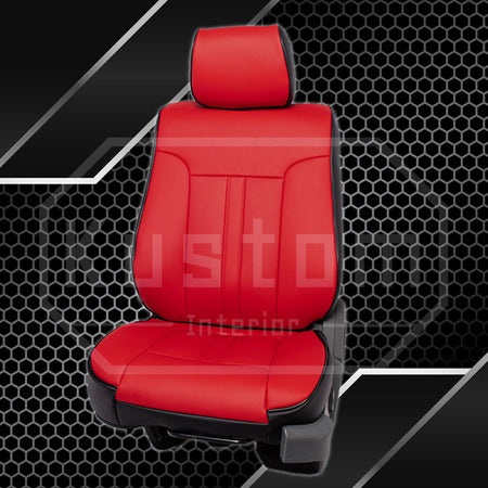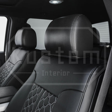 Upgrade your Ford F150 's seats with these luxurious, sporty leather seat covers from Kustom Interior™. Choose from a variety of color options for this artificial leather to complement your car's leather interior design or exterior paint job. With a 100% fitment guarantee, you can rest assured that these Ford F150 seat covers will work perfectly and look fantastic. The surface is waterproof and delightfully soft to the touch, protecting your factory upholstery leather seats from damage while also enhancing your comfort.