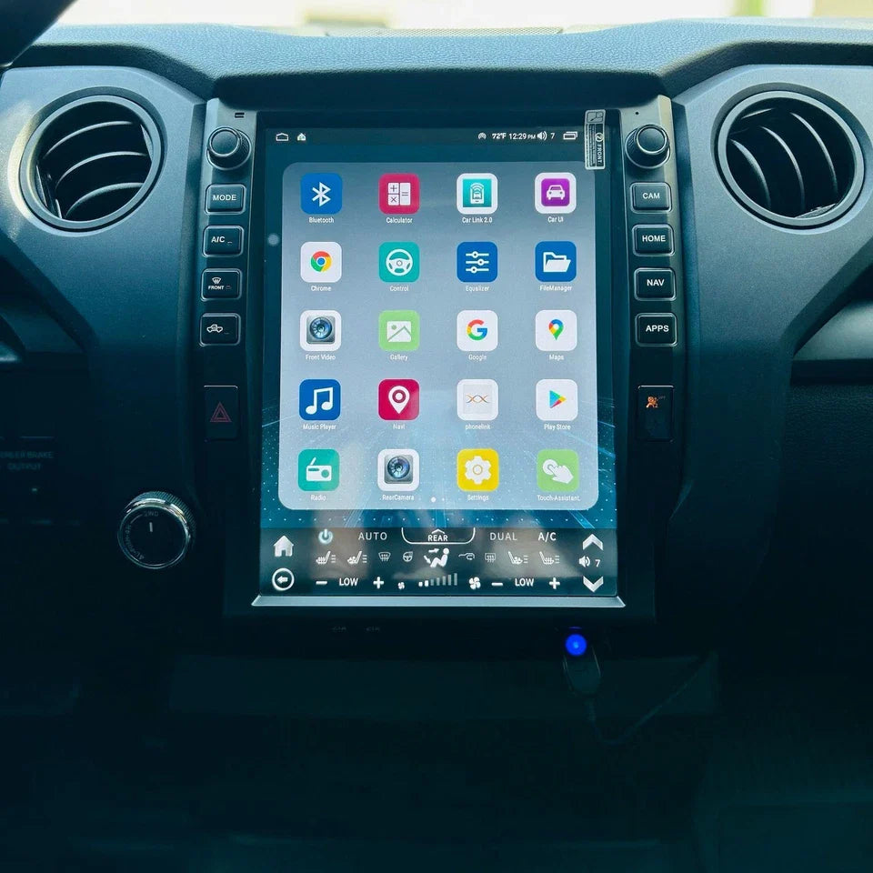 Upgrade your 2014–2021 Toyota Tundra with a premium 12.1 inch CarPlay infotainment system that delivers a dramatic tech upgrade to your truck’s interior. Featuring a large vertical touchscreen, smooth performance, and seamless Apple CarPlay/Android Auto integration, this system brings modern functionality while retaining full compatibility with your Tundra’s factory features. Enjoy a clean, OEM-style fit with a responsive, easy-to-use digital interface.