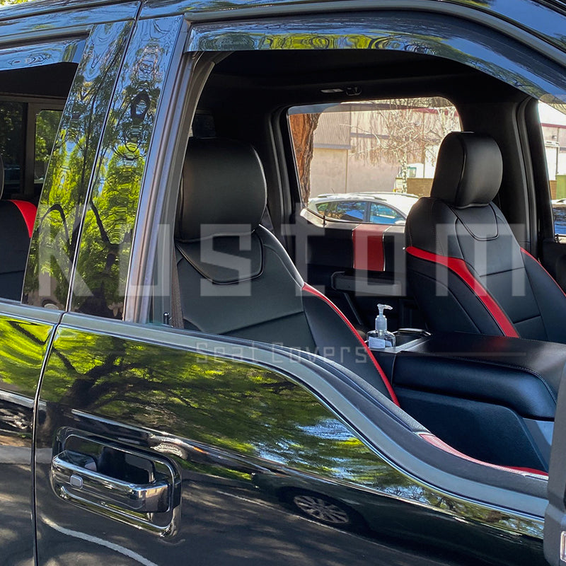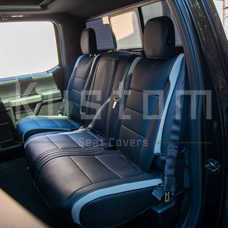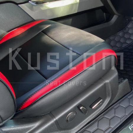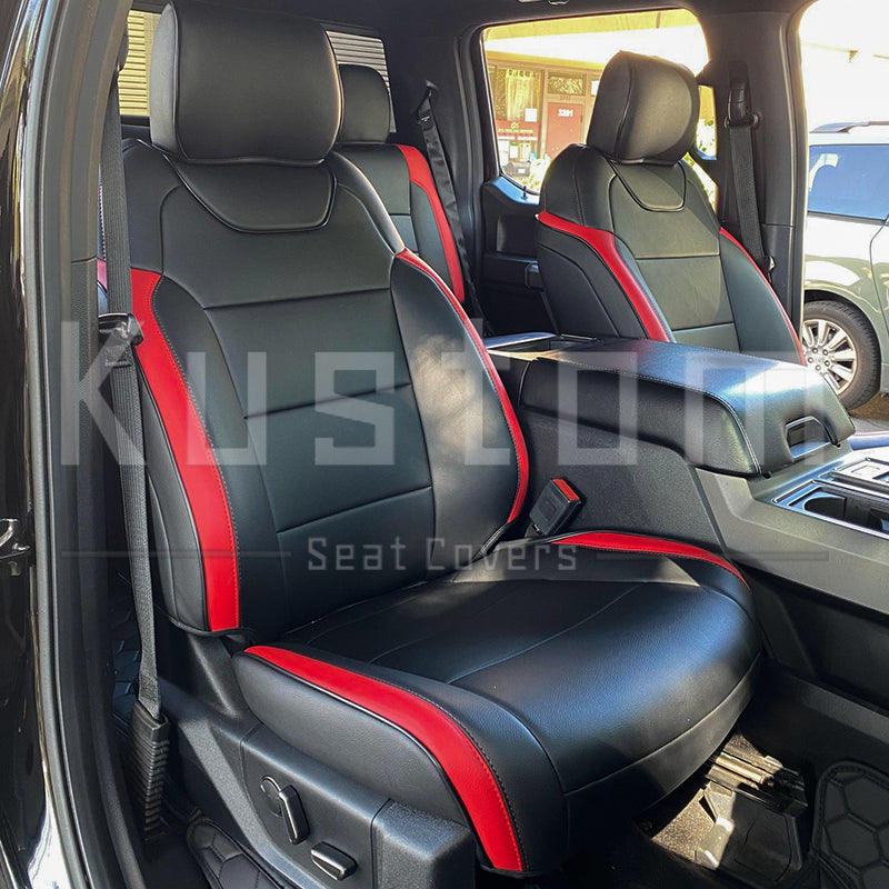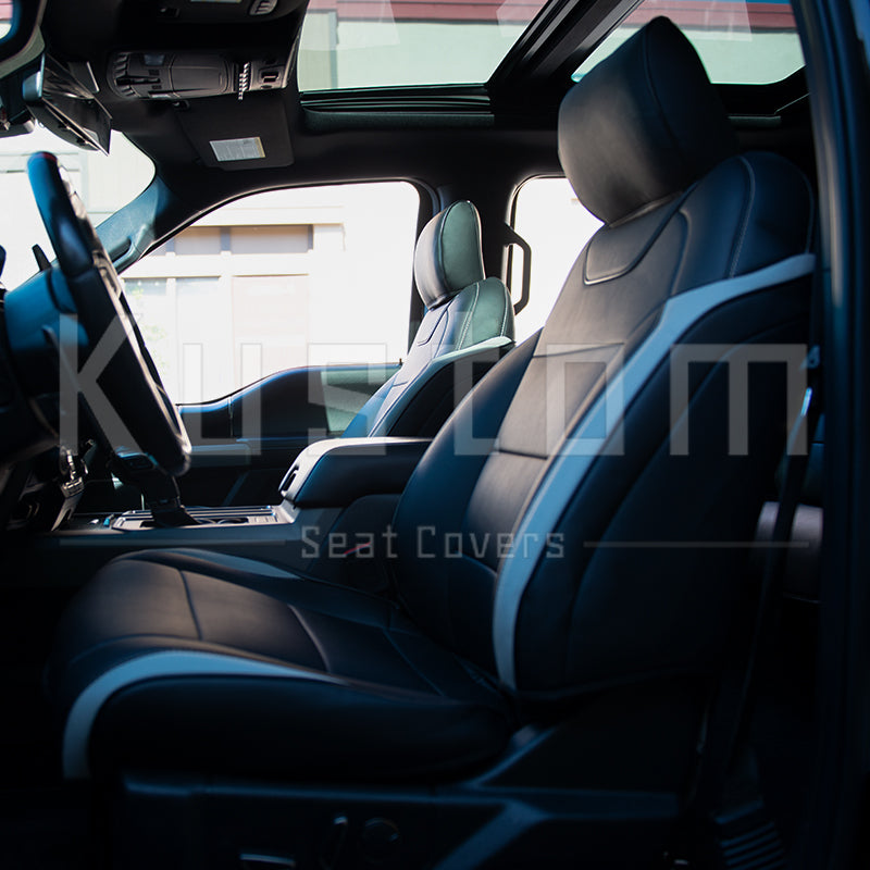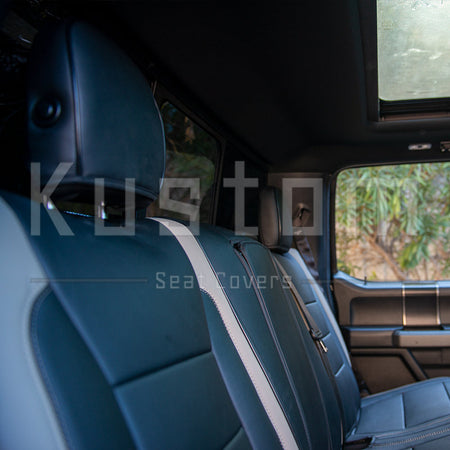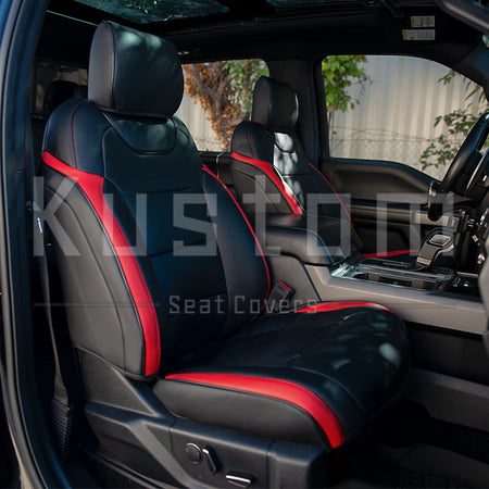 Upgrade your F-150 Raptor 's seats with these luxurious, sporty leather seat covers from Kustom Interior™. Choose from a variety of color options for this artificial leather to complement your car's leather interior design or exterior paint job. With a 100% fitment guarantee, you can rest assured that these F-150 Raptor seat covers will work perfectly and look fantastic. The surface is waterproof and delightfully soft to the touch, protecting your factory upholstery leather seats from damage while also enhancing your comfort.