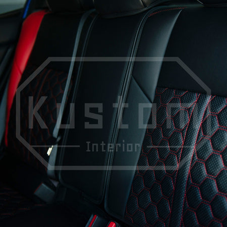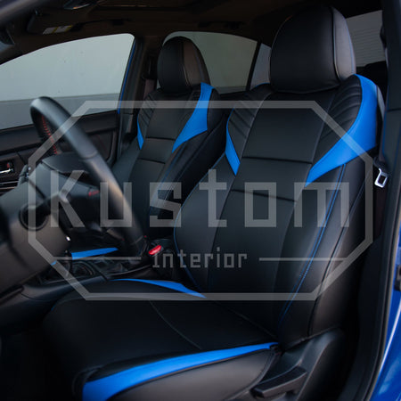 Upgrade your Subaru WRX / STi 's seats with these luxurious, sporty leather seat covers from Kustom Interior™. Choose from a variety of color options for this artificial leather to complement your car's leather interior design or exterior paint job. With a 100% fitment guarantee, you can rest assured that these Subaru WRX / STi seat covers will work perfectly and look fantastic. The surface is waterproof and delightfully soft to the touch, protecting your factory upholstery leather seats from damage while also enhancing your comfort.