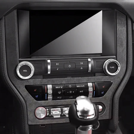Give your Ford Mustang's center console a sleek, race-inspired upgrade with our Alcantara Navigation/CD/AC Panel Cover, designed specifically for 2015–2023 models. Crafted from high-quality Alcantara, this precision-cut overlay enhances your dashboard’s appearance while maintaining full functionality of all controls.