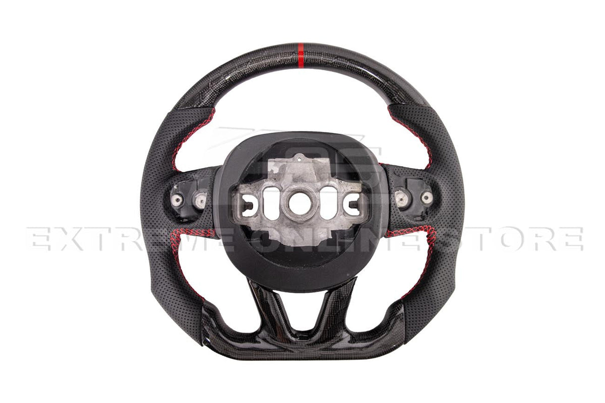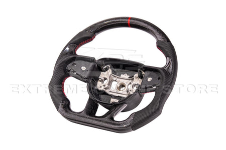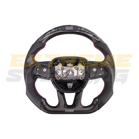 The EXTREME-STEERING™ Dodge Charger Carbon Fiber Steering Wheel is a high-performance, luxury upgrade for the Dodge Charger. Made from lightweight, durable carbon fiber, this steering wheel enhances the car's sporty aesthetic and offers superior handling and control. The design typically includes ergonomic grips and premium stitching, providing a blend of style, comfort, and functionality for an enhanced driving experience.