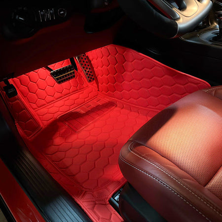 Introducing our Dodge Charger Custom Honeycomb Leather Floor Mat Liners – where performance meets luxury, and style takes center stage in your cherished pony car. Meticulously crafted, these floor mat liners are designed to not only enhance the driving experience but also add a dash of sophistication to the interior of your Charger.