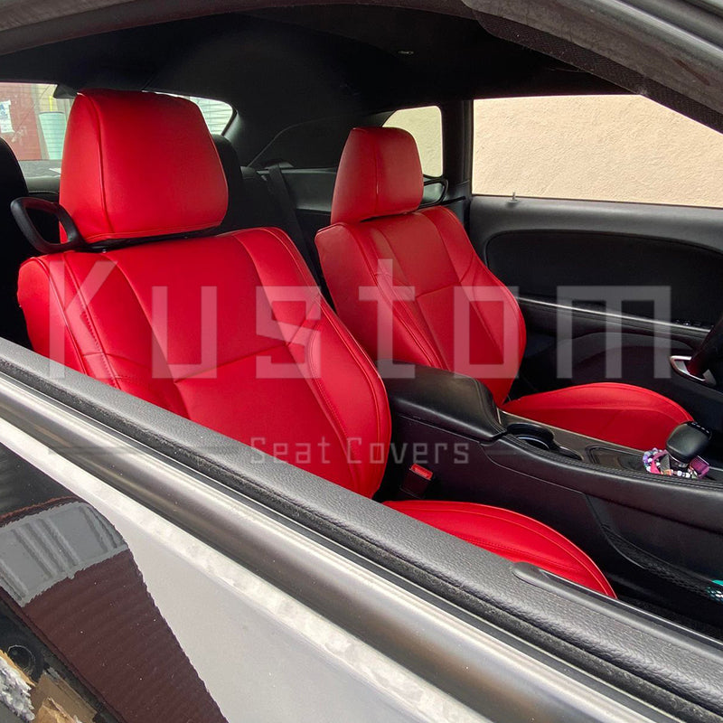 Upgrade your Dodge Charger 's seats with these luxurious, sporty leather seat covers from Kustom Interior™. Choose from a variety of color options for this artificial leather to complement your car's leather interior design or exterior paint job.