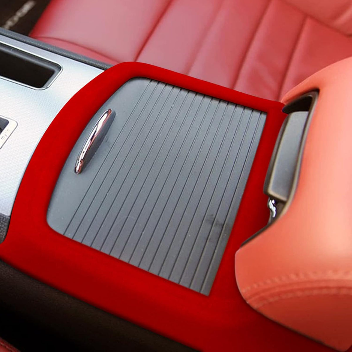 Compatible with Dodge Charger models from 2015+. Crafted from durable ABS and Alcantara materials. Package includes 1 piece front cup holder frame cover.