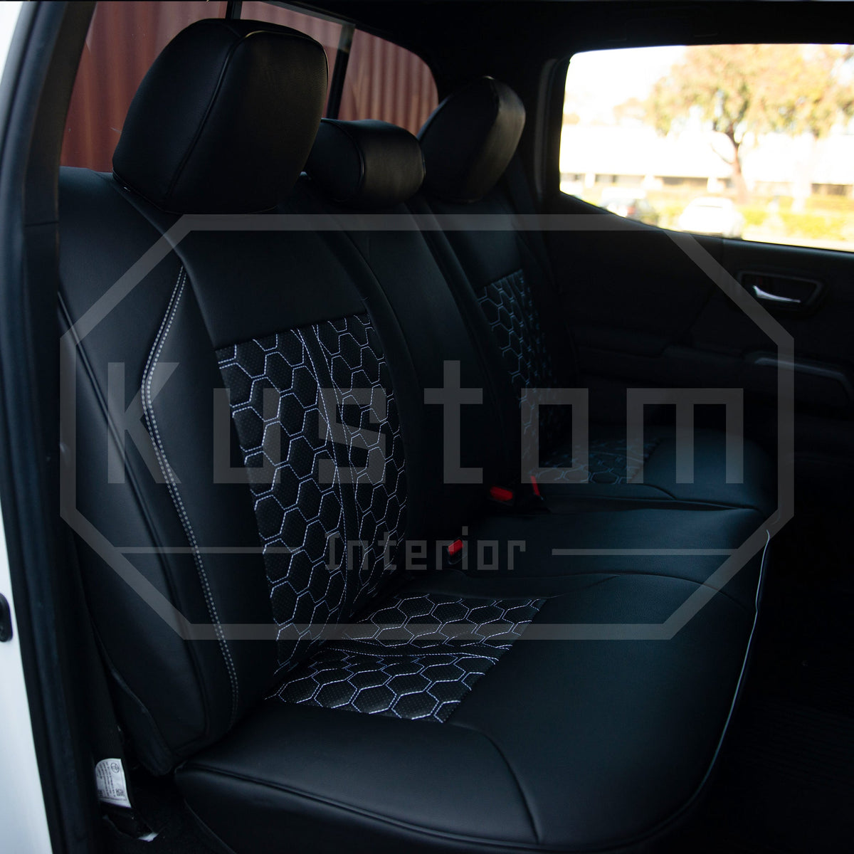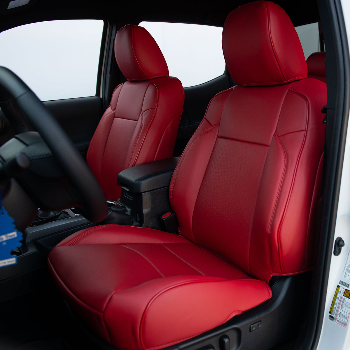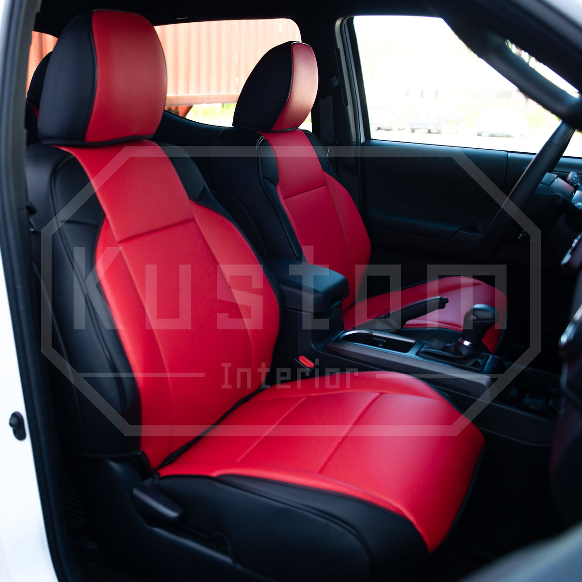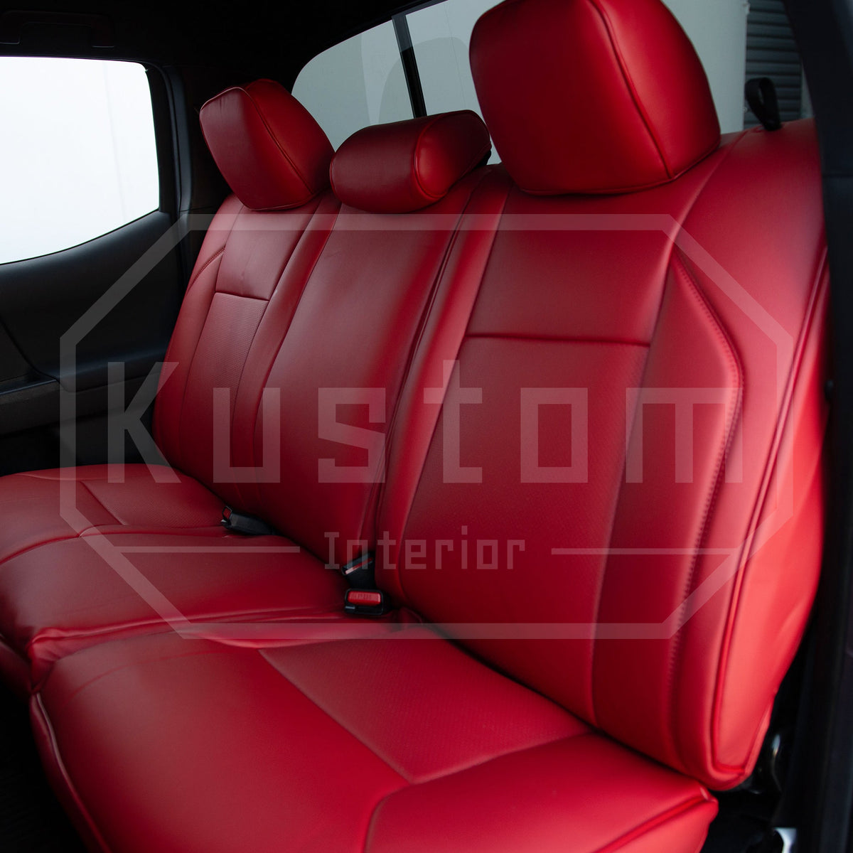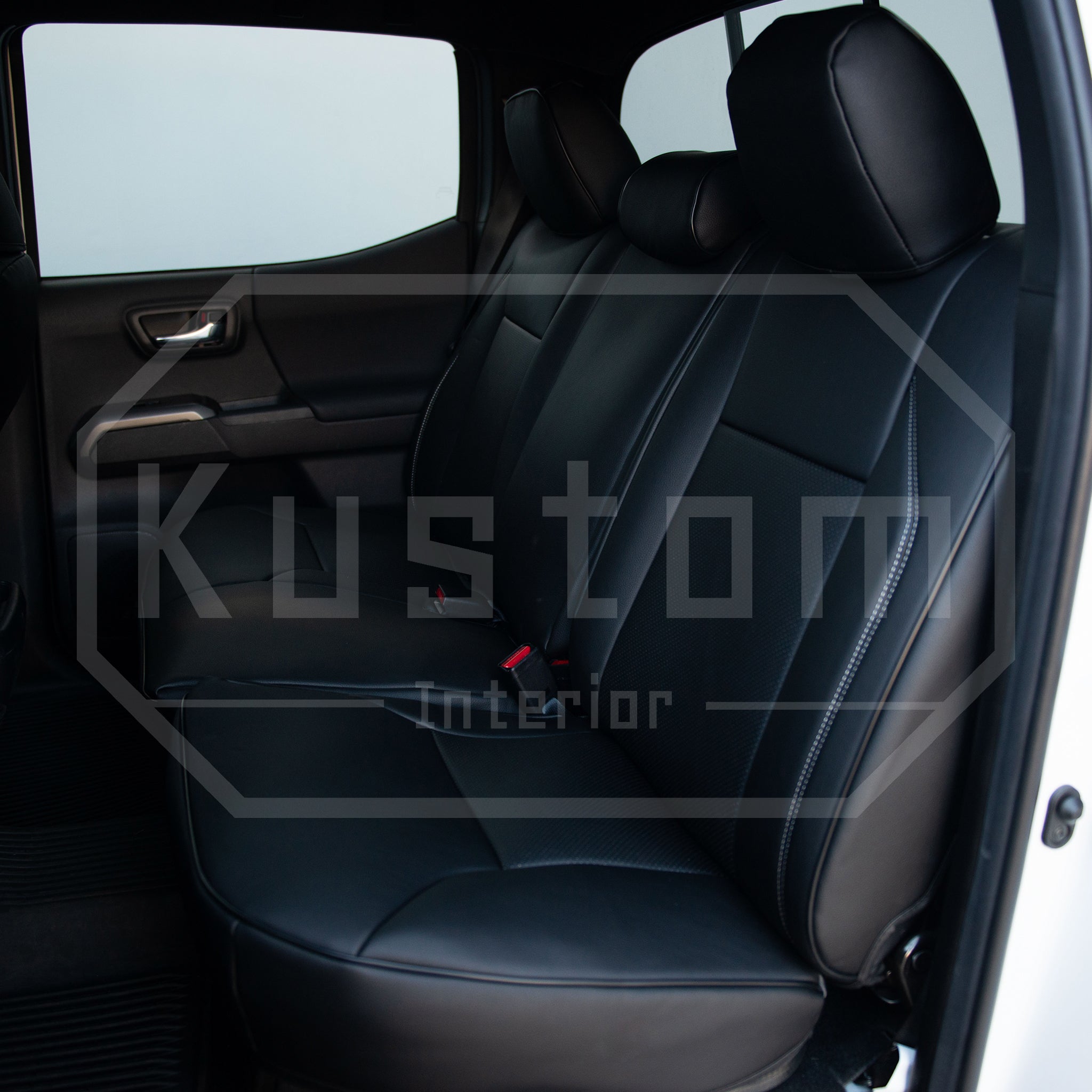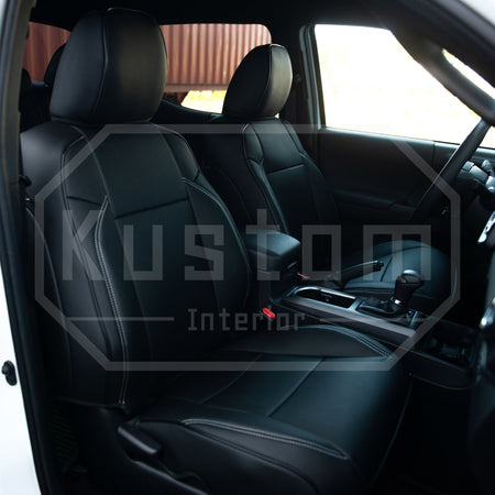 Upgrade your Toyota Tacoma's seats with these luxurious, sporty leather seat covers from Kustom Interior™. With a 100% fitment guarantee, you can rest assured that these Toyota Tacoma seat covers will work perfectly and look fantastic. The surface is waterproof and delightfully soft to the touch, protecting your factory upholstery leather seats from damage while also enhancing your comfort.