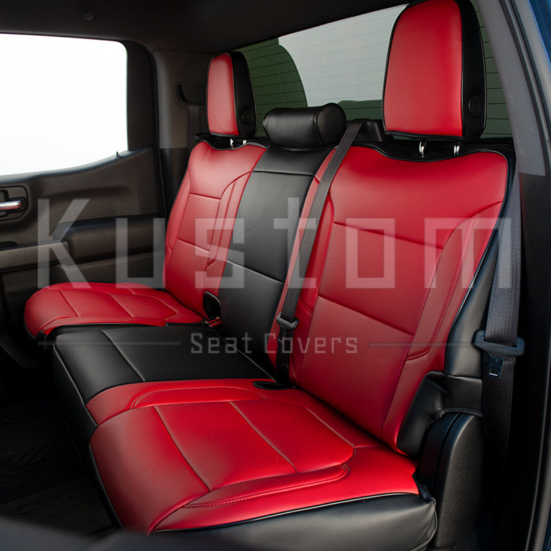 Upgrade your Chevrolet Silverado 's seats with these luxurious, sporty leather seat covers from Kustom Interior™. Choose from a variety of color options for this artificial leather to complement your car's leather interior design or exterior paint job. With a 100% fitment guarantee, you can rest assured that these Chevrolet Silverado seat covers will work perfectly and look fantastic.