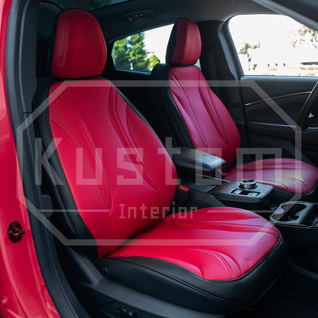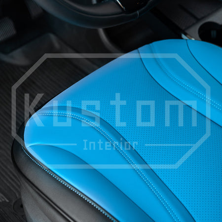 Upgrade your Ford Mustang Mach-E's seats with these luxurious, sporty leather seat covers from Kustom Interior™. Choose from a variety of color options for this artificial leather to complement your car's leather interior design or exterior paint job. With a 100% fitment guarantee, you can rest assured that these Ford Mustang Mach-E seat covers will work perfectly and look fantastic. The surface is waterproof and delightfully soft to the touch, protecting your factory upholstery leather seats from damage while also enhancing your comfort.