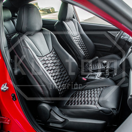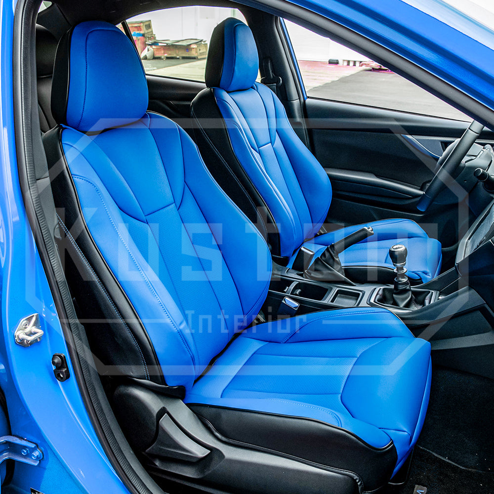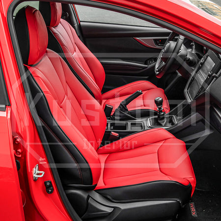 Upgrade your Subaru WRX 's seats with these luxurious, sporty leather seat covers from Kustom Interior™. Choose from a variety of color options for this artificial leather to complement your car's leather interior design or exterior paint job. With a 100% fitment guarantee, you can rest assured that these Subaru WRX seat covers will work perfectly and look fantastic. The surface is waterproof and delightfully soft to the touch, protecting your factory upholstery leather seats from damage while also enhancing your comfort.