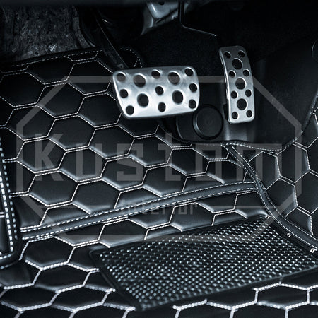 Crafted from top-tier, durable leather, the custom honeycomb pattern isn't just aesthetically pleasing; it's a functional marvel. Designed to combat daily wear and tear, these floor mat liners effectively capture dirt, debris, and spills, preserving the immaculate condition of your Toyota GR86 / Subaru BRZ's interior.