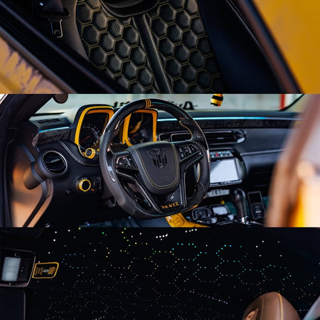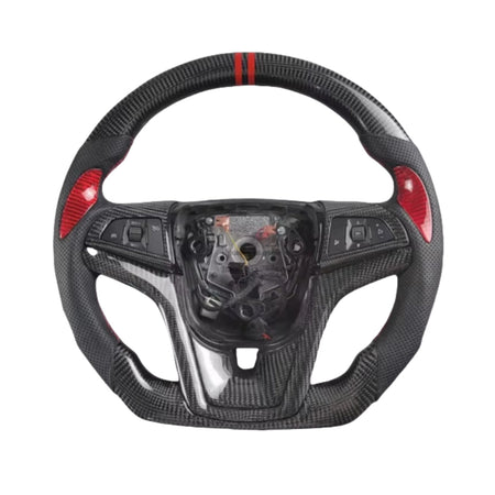 The EXTREME-STEERING™ 5th Gen Camaro Carbon Fiber Steering Wheel is a high-performance, luxury upgrade for the Chevrolet 6th Gen Camaro. Made from lightweight, durable carbon fiber, this steering wheel enhances the car's sporty aesthetic and offers superior handling and control. The design typically includes ergonomic grips and premium stitching, providing a blend of style, comfort, and functionality for an enhanced driving experience.