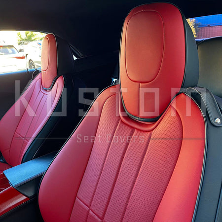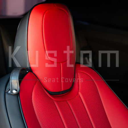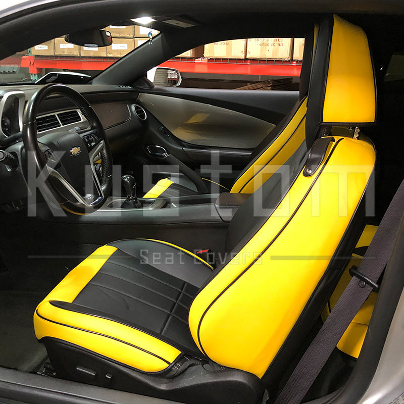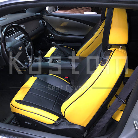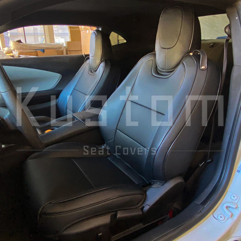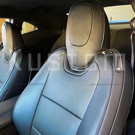 Upgrade your 5th Gen Camaro's seats with these luxurious, sporty leather seat covers from Kustom Interior™. Choose from a variety of color options for this artificial leather to complement your car's leather interior design or exterior paint job. With a 100 %fitment guarantee, you can rest assured that these 5th Gen Camaro seat covers will work perfectly and look fantastic. The surface is waterproof and delightfully soft to the touch, protecting your factory upholstery leather seats from damage while also enhancing your comfort.