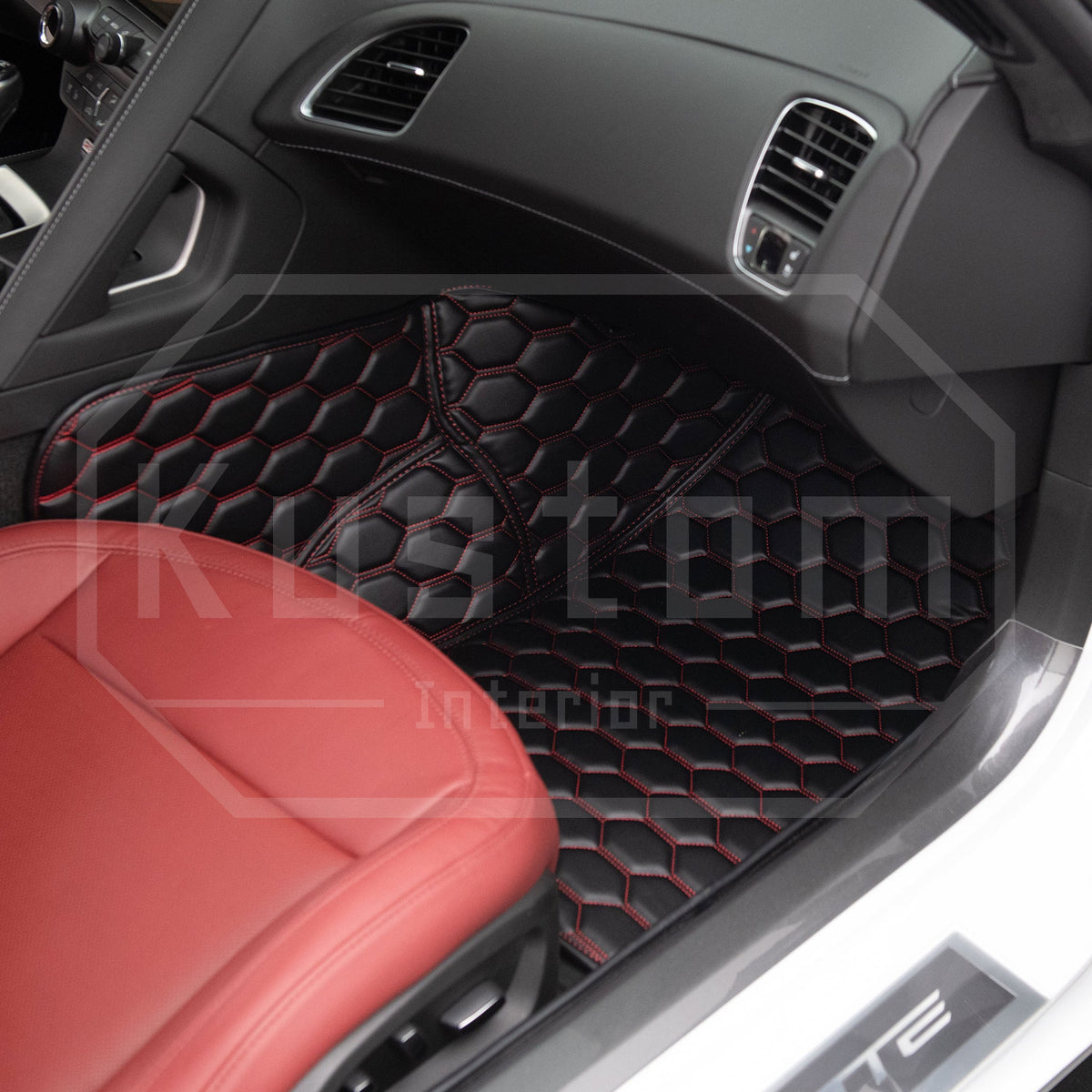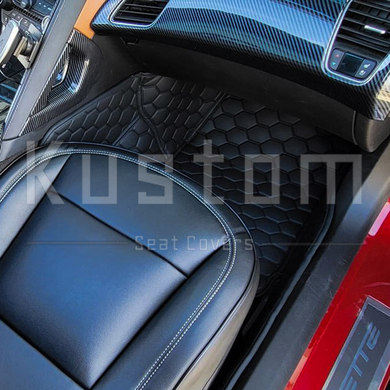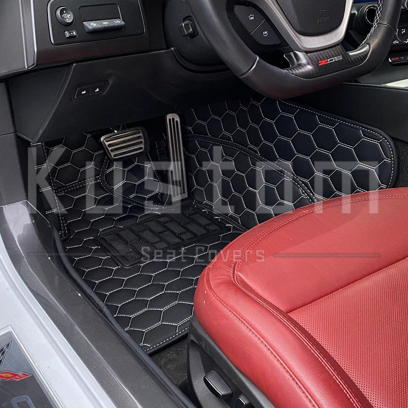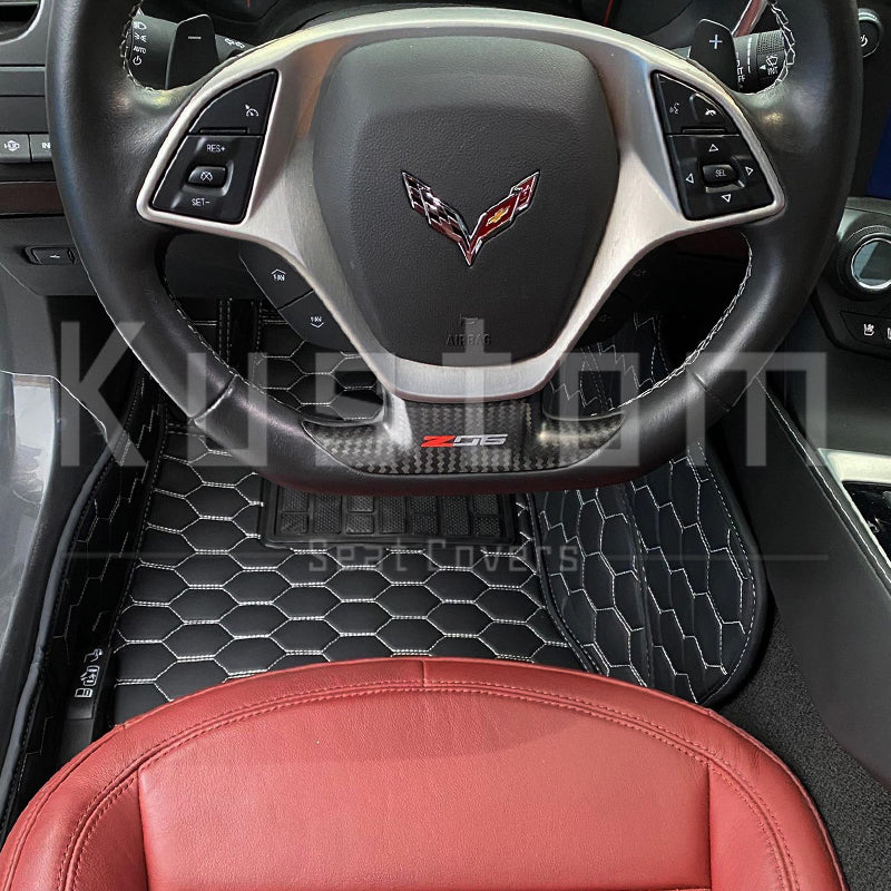 Corvette C7 Custom Honeycomb Leather Floor Mat