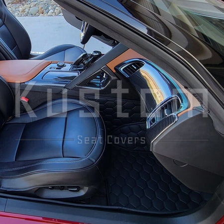 Made from high-quality, durable leather, the custom honeycomb pattern not only enhances the aesthetic appeal of your car but also provides exceptional protection against daily wear and tear. The honeycomb design isn't just for show – it traps dirt, debris, and spills, keeping your Corvette's interior spotless and well-maintained.