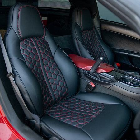 Upgrade the aesthetic of your Corvette C6 with the Kustom Interior™ leather seat covers. Crafted meticulously using premium artificial / genuine leather, our seat covers are available in an array of colors, primed to harmonize with your car's interior upholstery or its striking exterior finish.