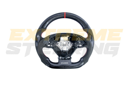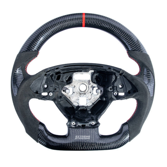 The EXTREME-STEERING™ Corvette C7 Carbon Fiber Steering Wheel is a high-performance, luxury upgrade for the Chevrolet Corvette C7. Made from lightweight, durable carbon fiber, this steering wheel enhances the car's sporty aesthetic and offers superior handling and control. The design typically includes ergonomic grips and premium stitching, providing a blend of style, comfort, and functionality for an enhanced driving experience.
