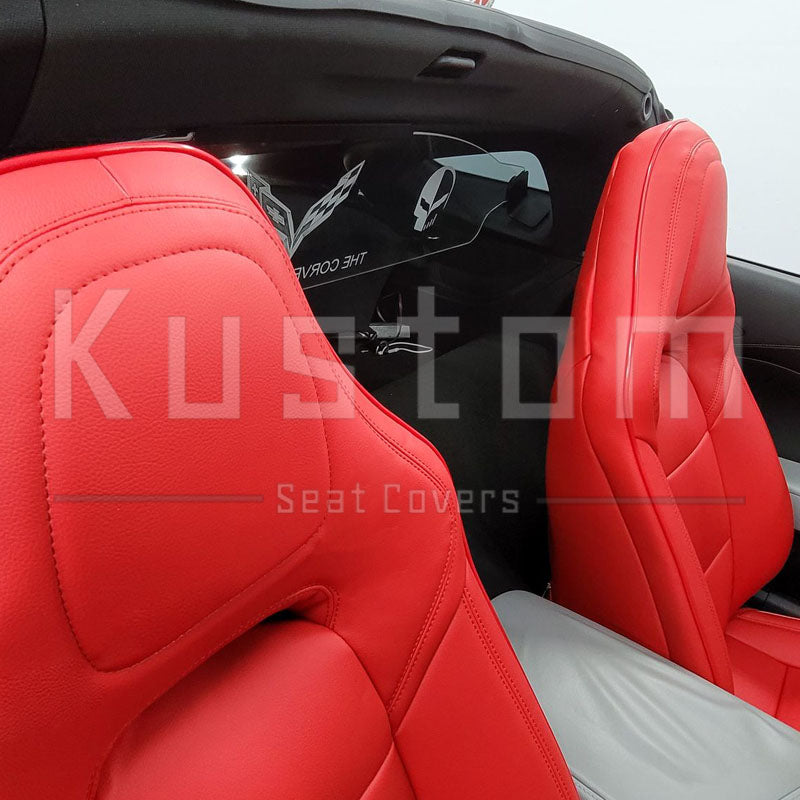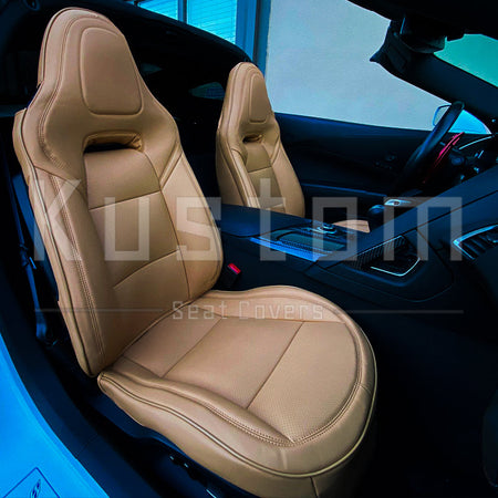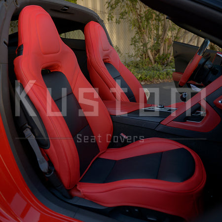 Enhance the style of your Corvette C7 with Kustom Interior™ leather seat covers. Expertly crafted from premium artificial / genuine leather, these seat covers are available in a variety of colors, designed to perfectly complement your car's interior or bold exterior finish.
