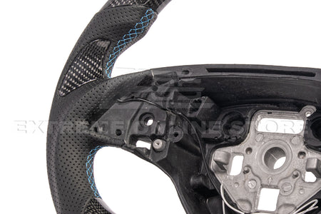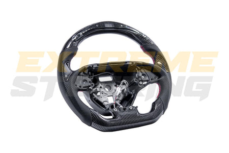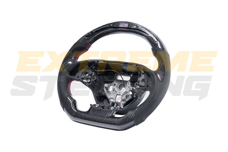 The EXTREME-STEERING™ Corvette C7 Carbon Fiber Steering Wheel is a high-performance, luxury upgrade for the Chevrolet Corvette C7. Made from lightweight, durable carbon fiber, this steering wheel enhances the car's sporty aesthetic and offers superior handling and control. The design typically includes ergonomic grips and premium stitching, providing a blend of style, comfort, and functionality for an enhanced driving experience.