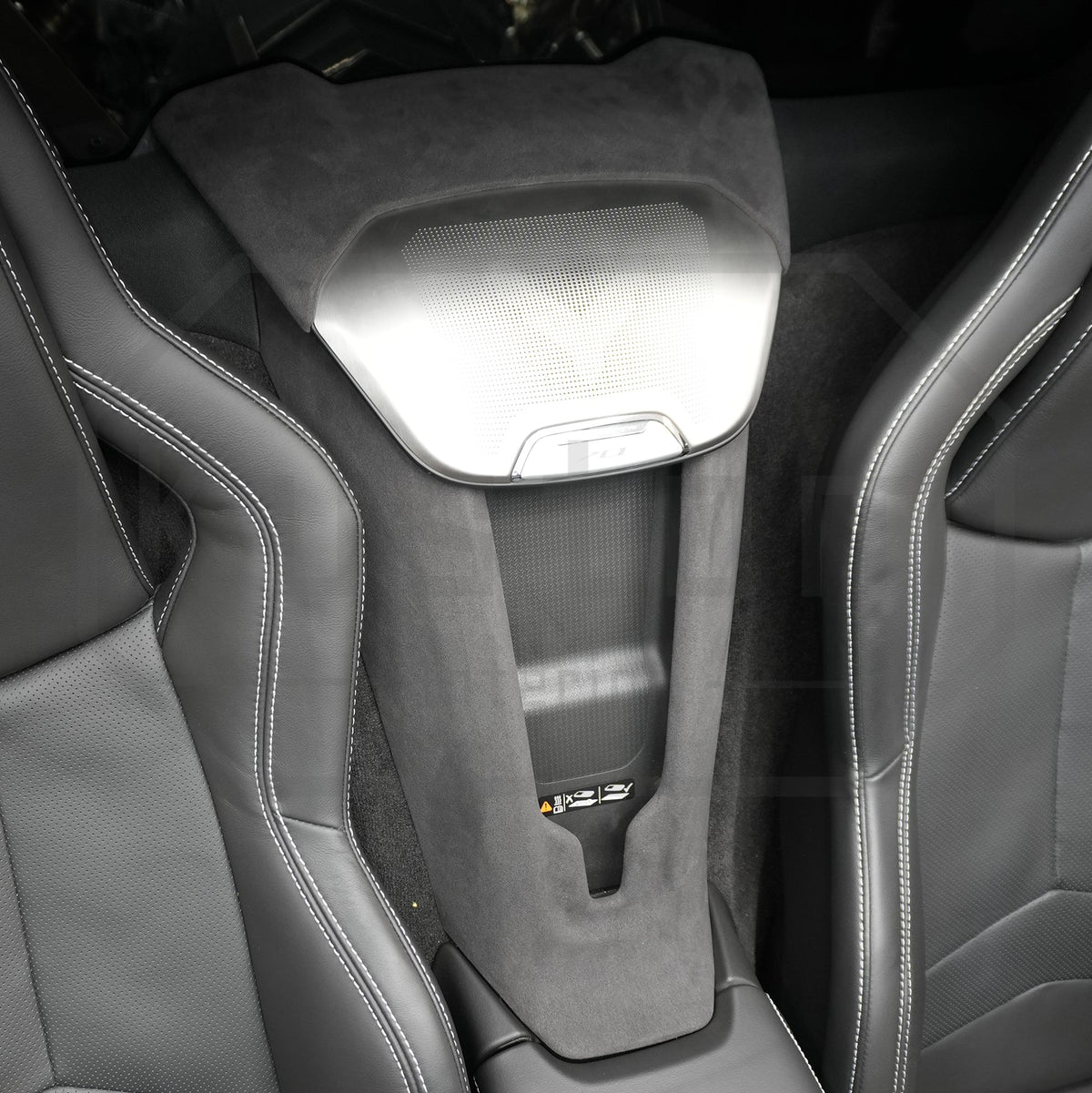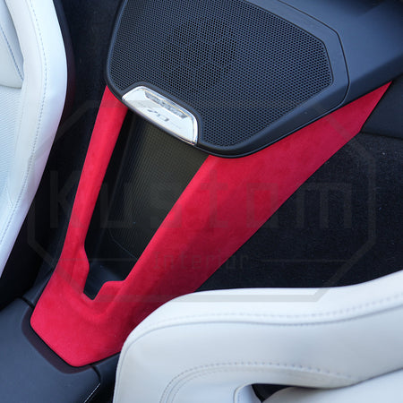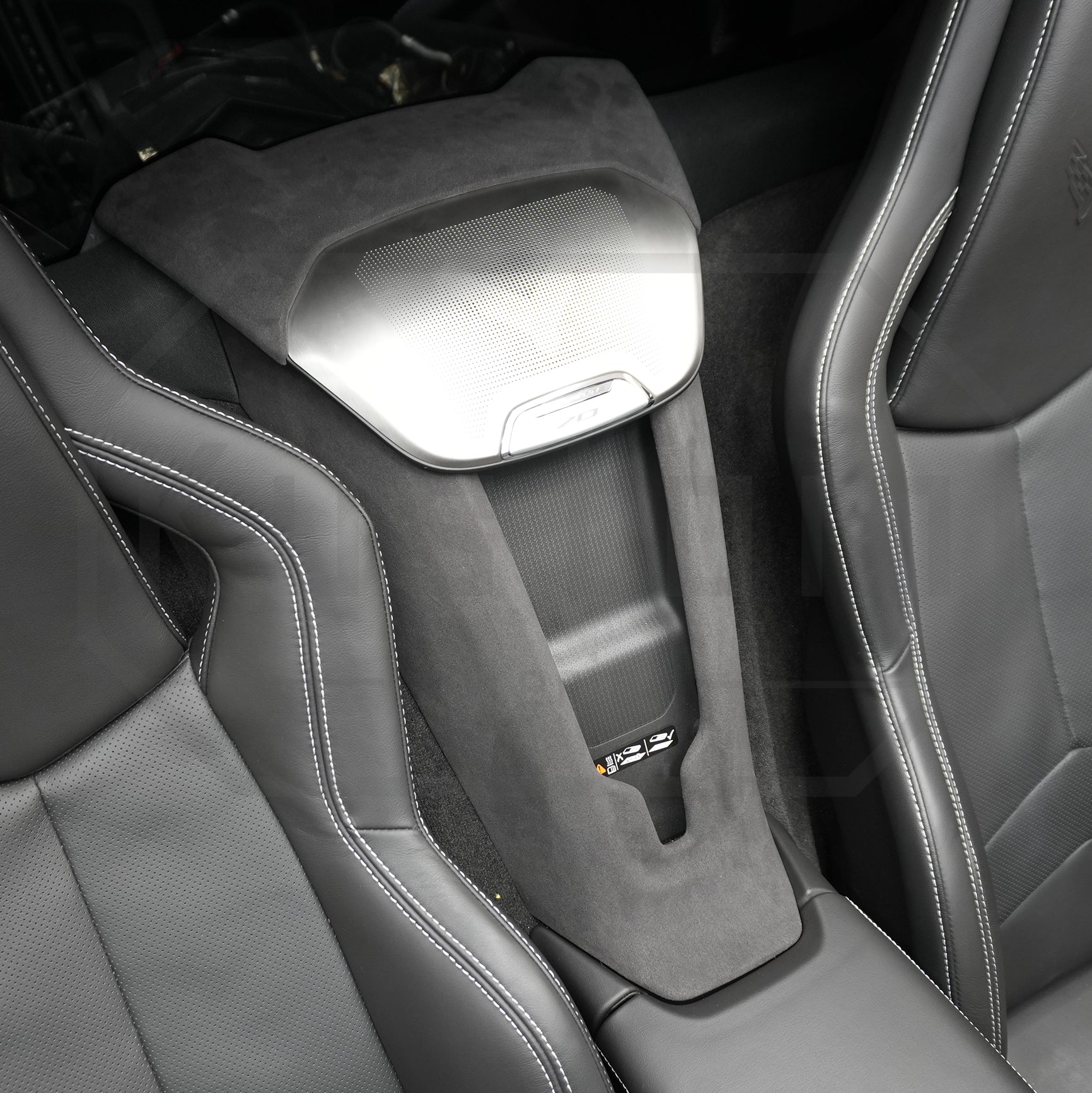 Enhance the sophistication of your cabin with the Kustom Interior™ Suede Leather Waterfall Wireless Charger Cover Trim, custom-designed for the Chevrolet Corvette C8. This premium interior upgrade adds a refined, motorsport-inspired aesthetic to the rear waterfall console area while maintaining the C8’s distinctive factory design.