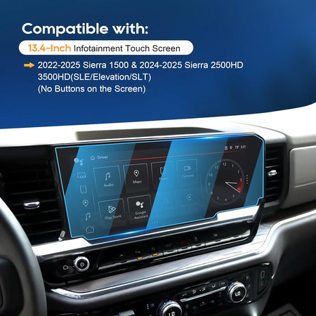Protect your Sierra’s infotainment display from scratches, smudges, dust, and daily wear. Cut precisely to match the OEM screen for perfect coverage and full clarity.